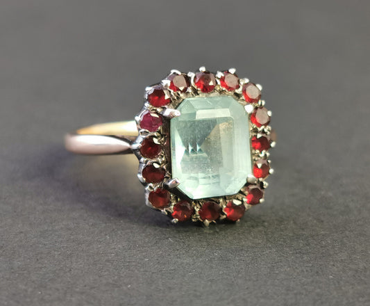 Antique Victorian Aquamarine and Garnet ring, 9ct gold