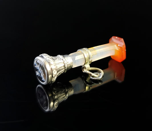 Antique Victorian Scottish agate and Silver seal pendant, fob, Thistle