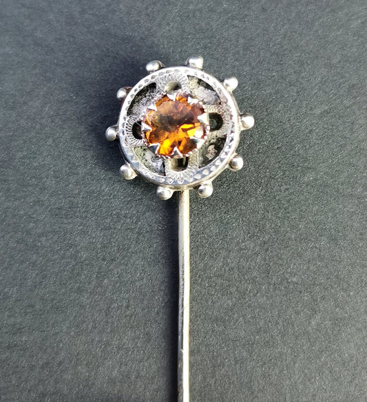 Antique Victorian Scottish silver and citrine stick pin
