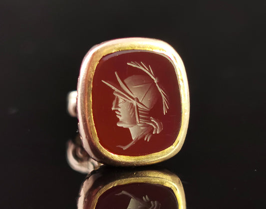 Antique Victorian 9ct gold Carnelian seal fob, Soldier