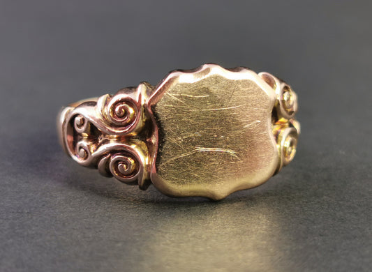 Antique Signet ring, 9ct Rose gold, shield shaped, heavy