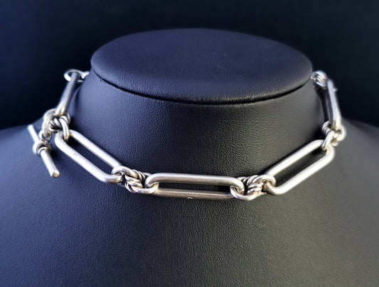 Antique Victorian silver Albert chain, watch chain, Trombone link