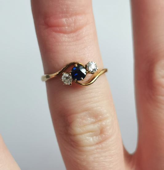 Antique Diamond and Sapphire Crossover ring, 18ct gold