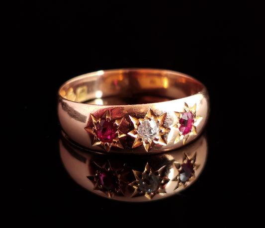 Antique Ruby and Diamond gypsy set ring, 18ct gold, Edwardian