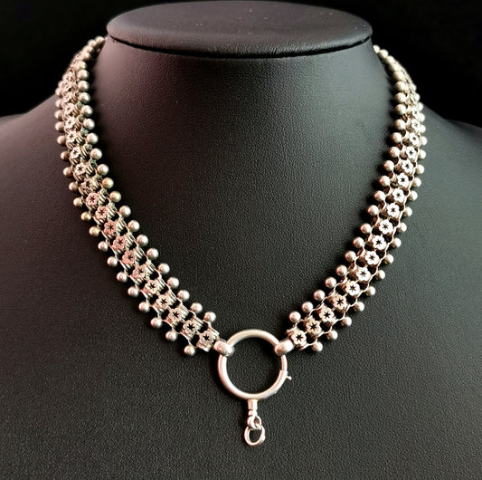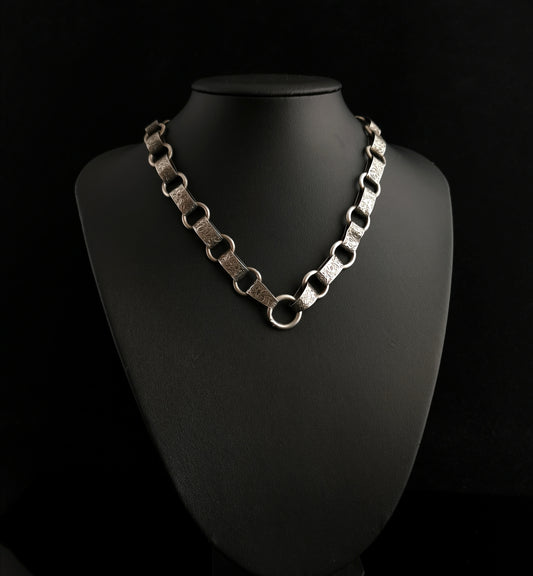 Antique fancy link 9ct gold chain necklace, Edwardian