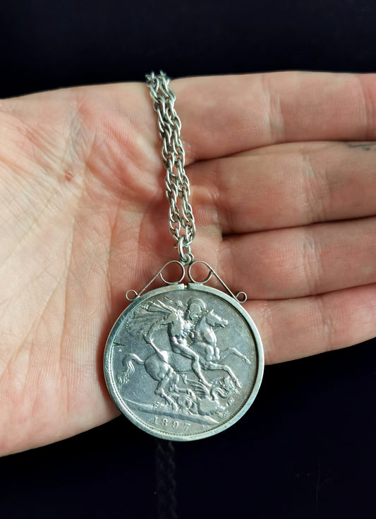 AusverkauftAntique Victorian silver coin pendant, necklace