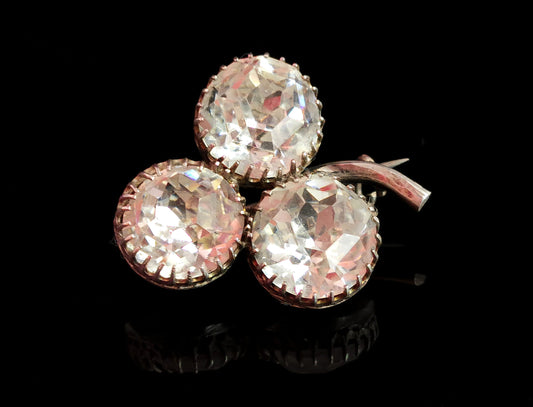 Antique Paste Shamrock brooch, sterling silver, Victorian