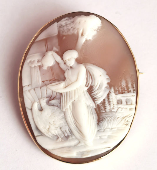 Antique cameo brooch, 9ct gold, Hebe and the Eagle