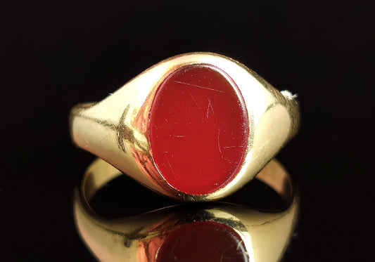 Antique Art Deco 18ct gold signet ring, Carnelian