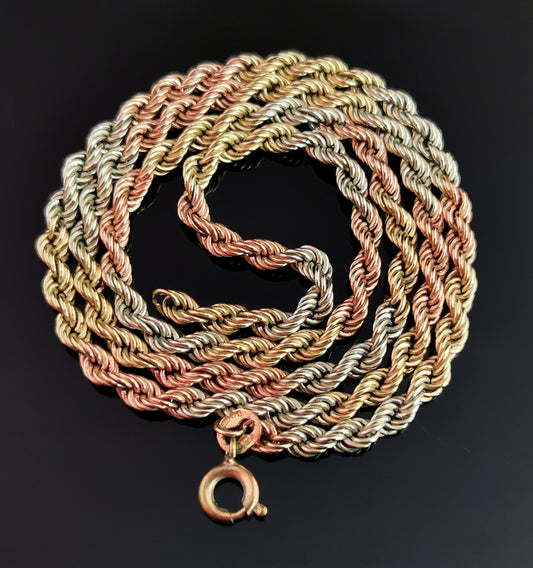 AusverkauftVintage 9ct tri colour gold Rope Chain necklace