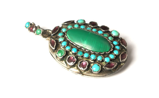 Antique Austro Hungarian Gem set locket pendant, silver