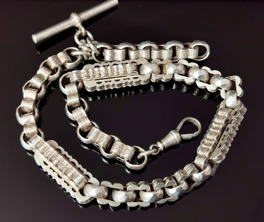 Antique silver Albert chain, fancy link, watch chain, Victorian