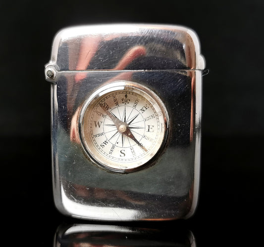 AusverkauftAntique silver vesta case, Compass, Victorian