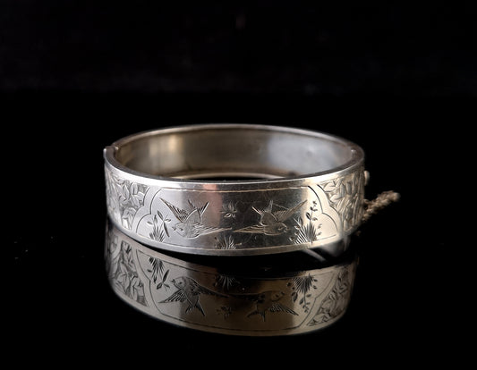 AusverkauftVictorian silver bangle, Swallows, Aesthetic era