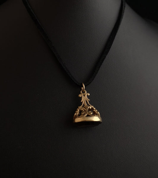 Vintage 9ct gold seal fob, pendant, smokey quartz