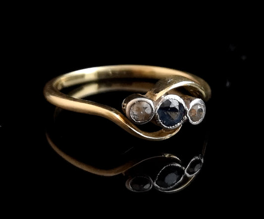 Art Deco Sapphire and Diamond trilogy ring, 18ct gold