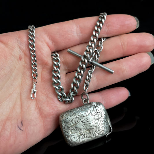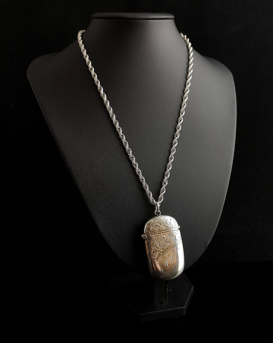 AusverkauftVintage silver locket and chain, 1970s, necklace