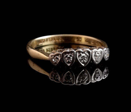 Vintage Art Deco diamond heart ring, 18ct gold and platinum