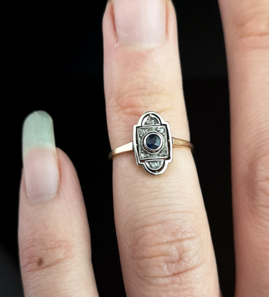 Art Deco Sapphire and Diamond ring, 9ct gold and platinum