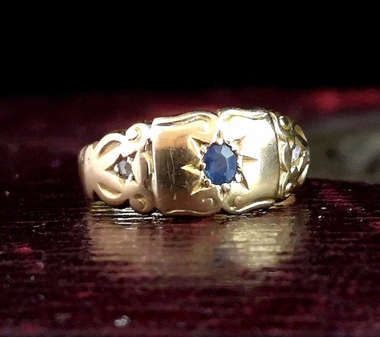 Victorian sapphire and diamond ring, 18ct gold, Gypsy set