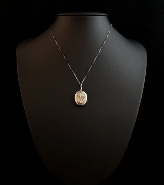AusverkauftVintage silver heart locket, necklace, Art Deco