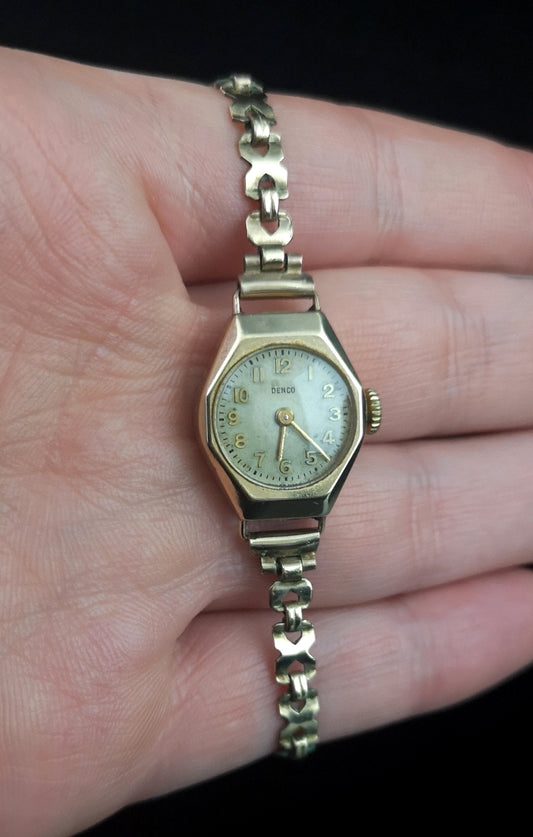 Vintage Art Deco 9ct gold ladies wristwatch, Denco