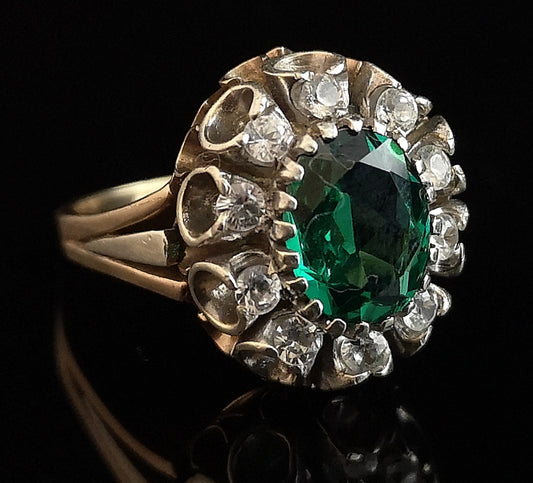 AusverkauftAntique emerald paste cluster ring, 9ct gold