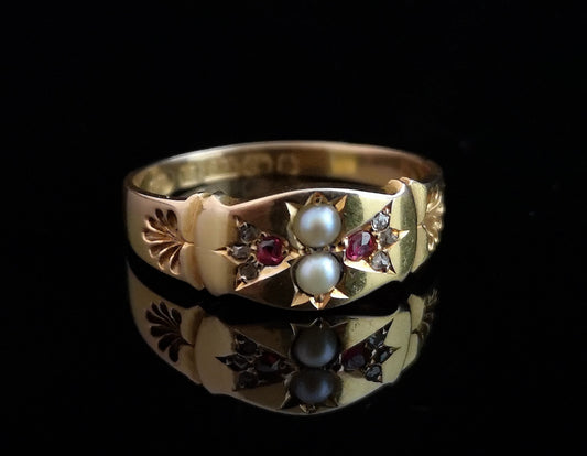 Victorian Ruby, pearl and diamond ring, 15ct gold