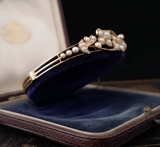 AusverkauftVictorian 18ct gold bangle, Diamond and pearl