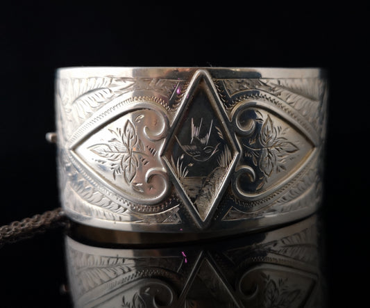 AusverkauftVictorian silver cuff bangle, Aesthetic era