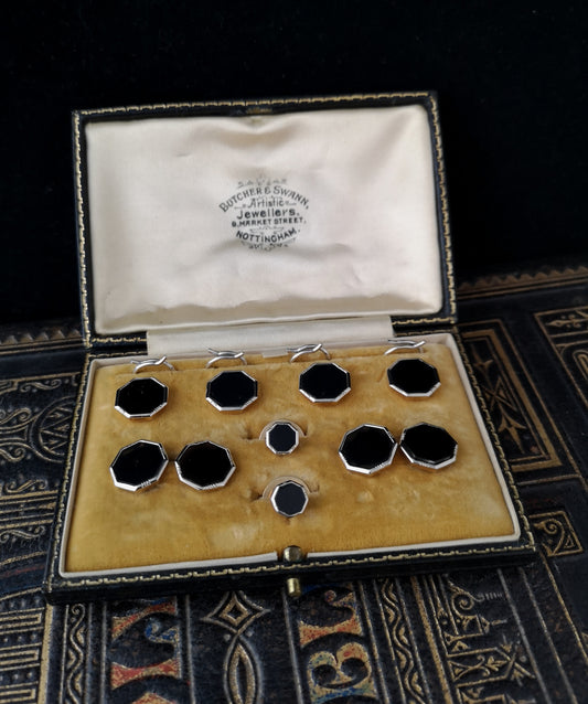 Art Deco cufflink set, Onyx, 18ct white gold, 9ct gold