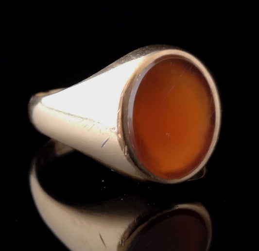 AusverkauftArt Deco 9ct gold signet ring, Carnelian