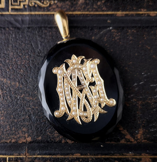 AusverkauftVictorian gold mourning locket, Onyx and pearl