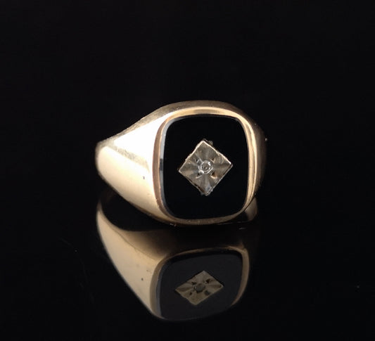 AusverkauftVintage Onyx and diamond signet ring, 9ct gold