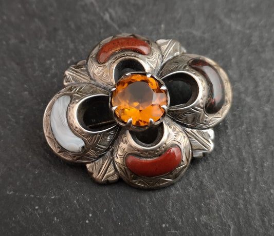 Antique Victorian Scottish silver and agate brooch