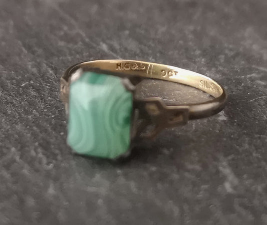 Vintage Art Deco ring, 9ct gold and silver, agate