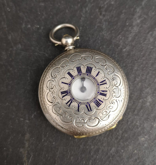 Antique Victorian silver half hunter pocket watch, ladies
