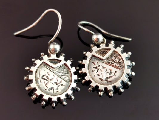 Antique Victorian silver aesthetic earrings, dangly