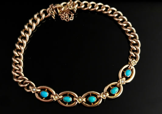 Antique Victorian Turquoise and pearl bracelet, 9ct gold