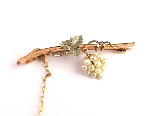 Antique pearl Grapes tremblant brooch, 15ct gold and silver