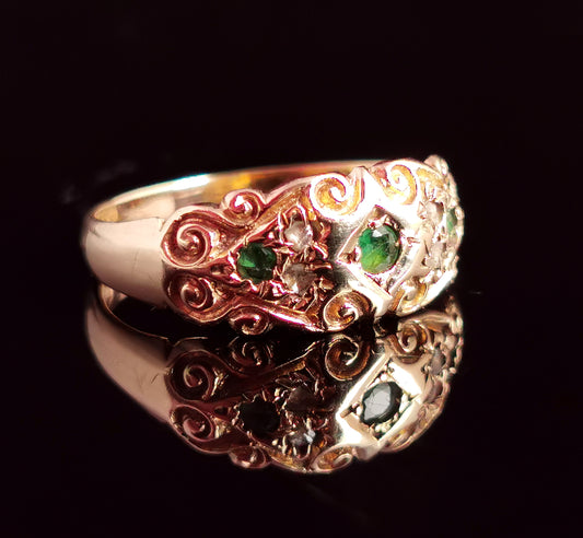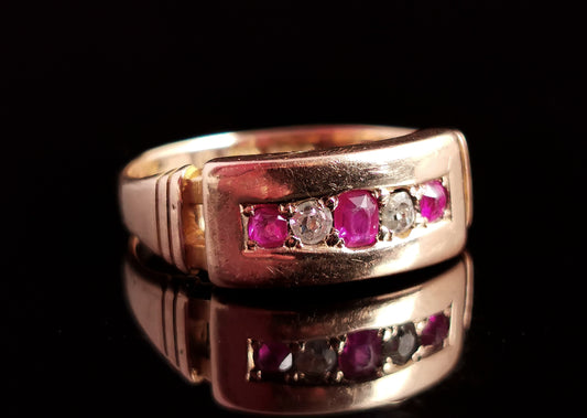 Antique Ruby and Diamond band ring, 15ct gold, Victorian