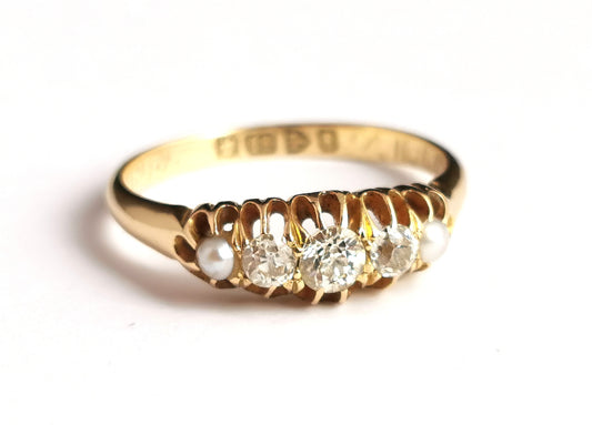 Antique diamond and pearl ring, 18ct gold, Edwardian