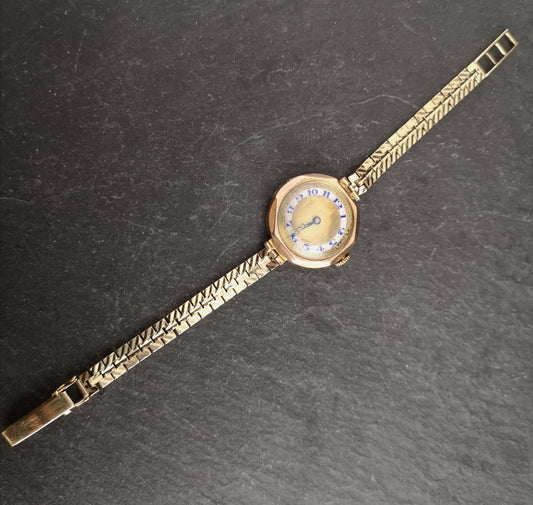 AusverkauftVintage Art Deco ladies 9ct gold wrist watch
