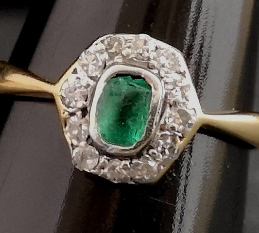 Victorian emerald and pearl forget me not ring, 15ct gold