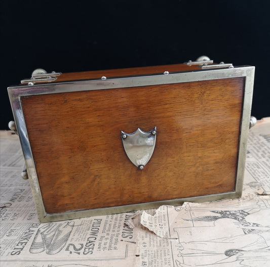AusverkauftAntique oak and silver plated jewellery box