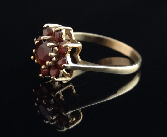 AusverkauftVintage garnet flower ring, 9ct gold