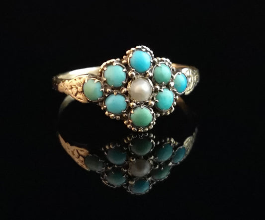 AusverkauftAntique turquoise and pearl ring, 15ct gold