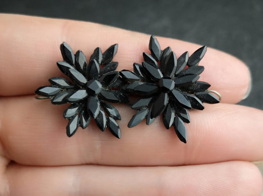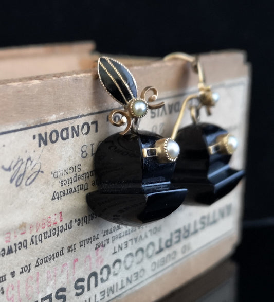 Victorian Onyx, Pearl and Gold earrings, mourning