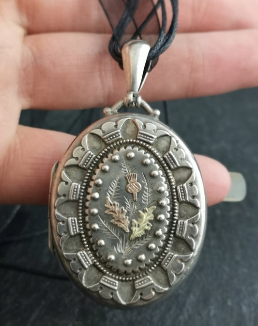 Victorian silver locket, rose gold thistle, aesthetic