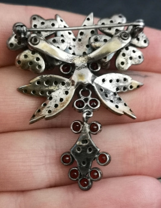 Antique Art Nouveau garnet and pyrite dropper brooch